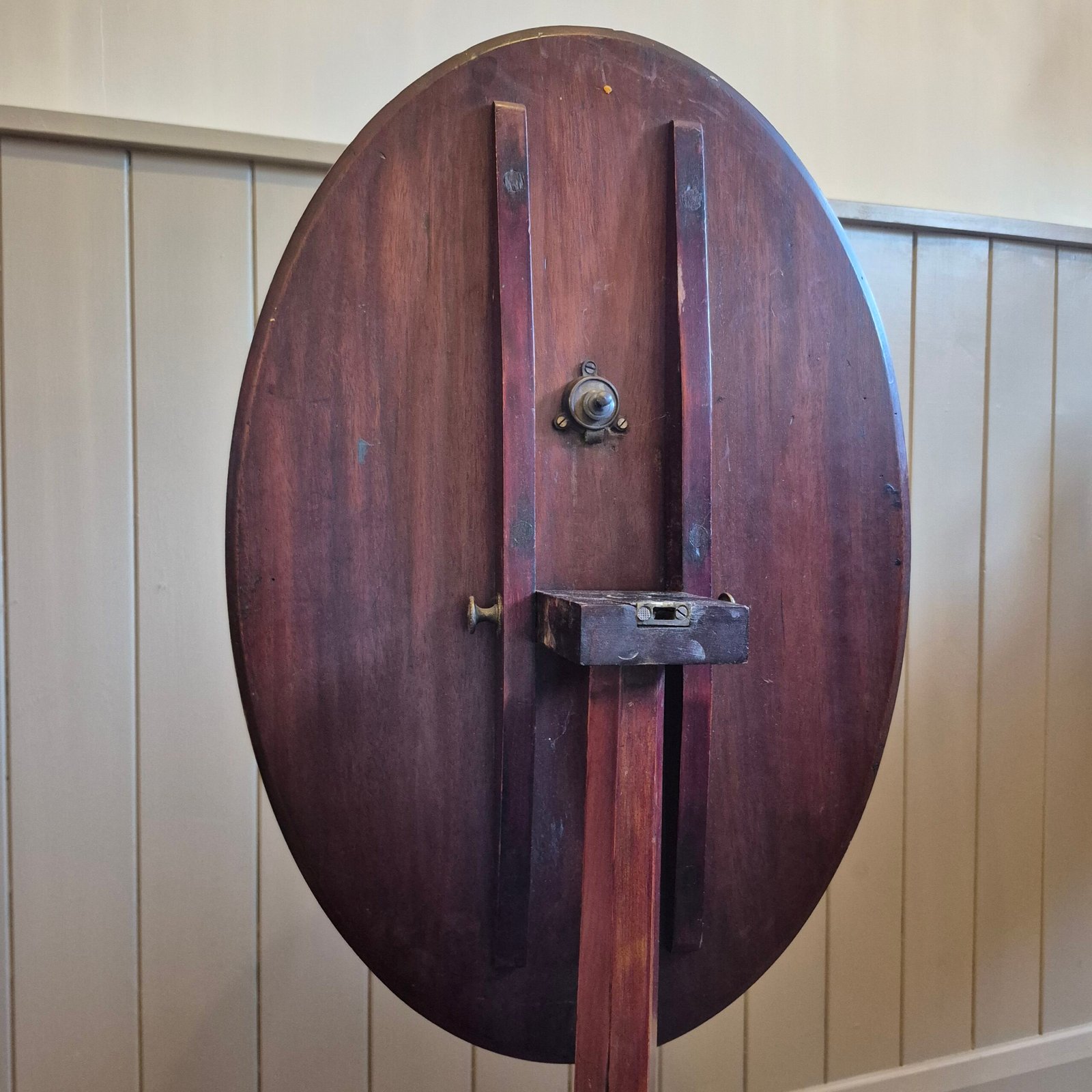 The top tilts vertically, revealing the original mechanism beneath, making it practical for storage while also highlighting its period construction.