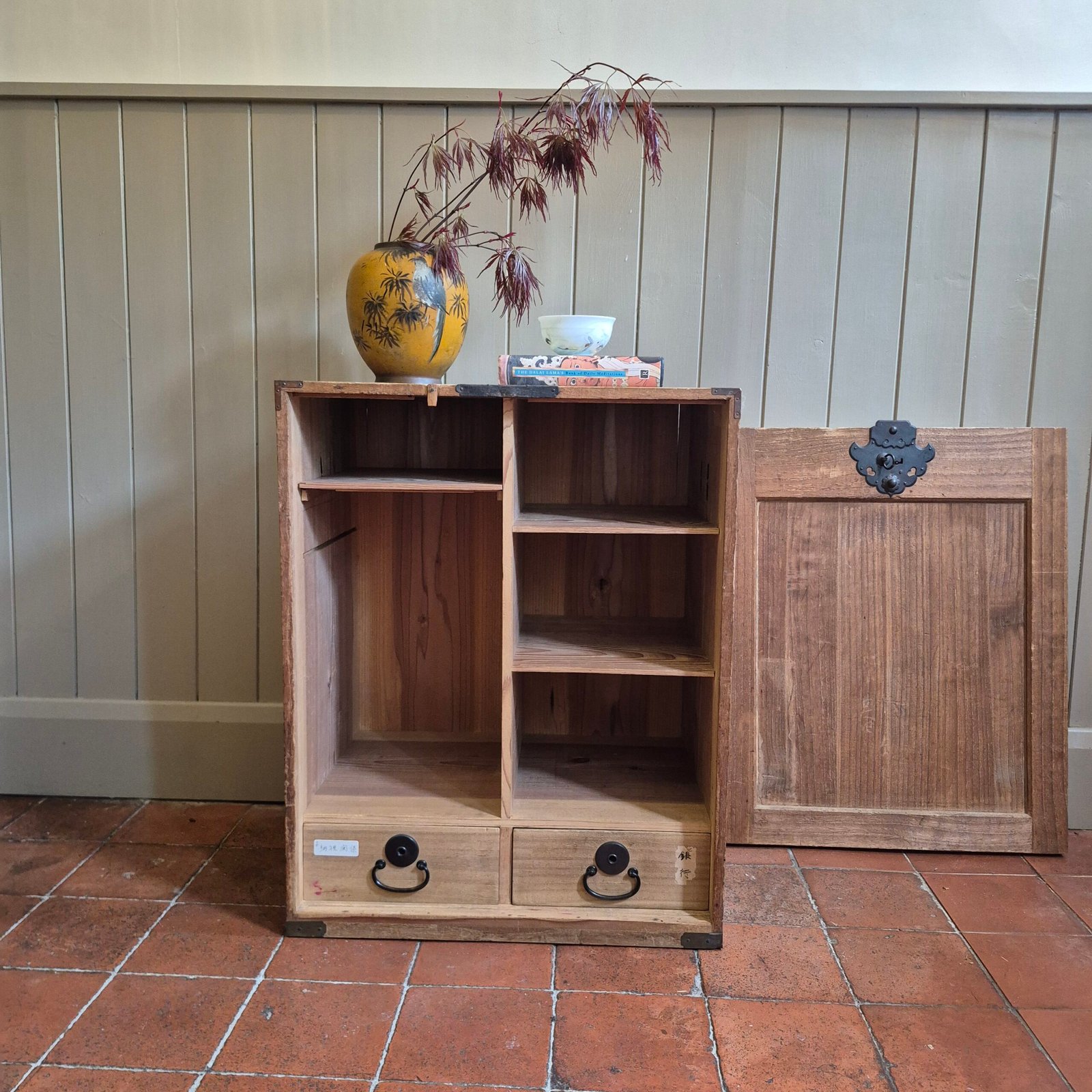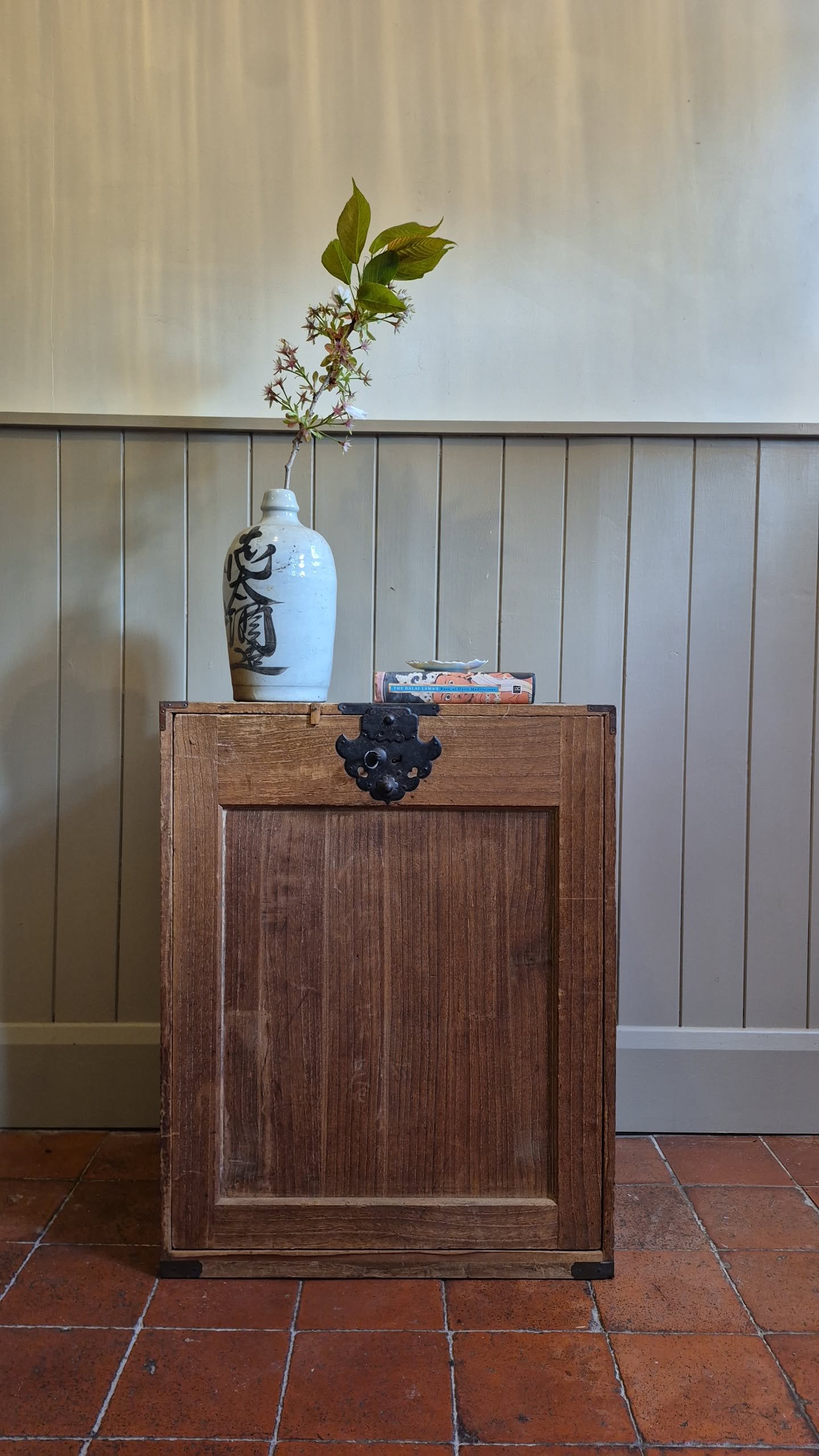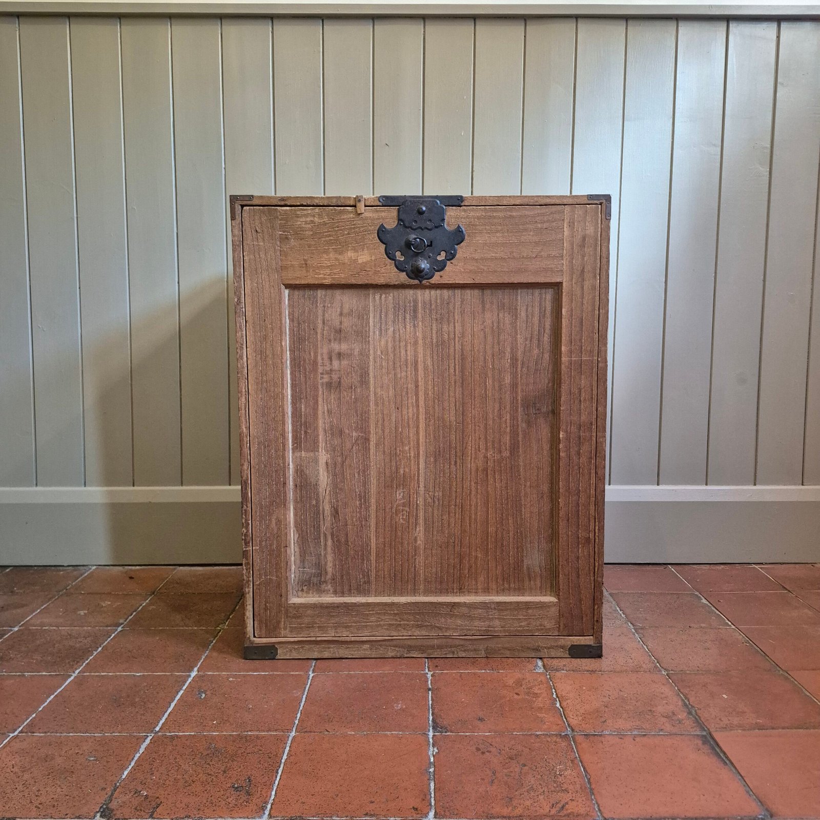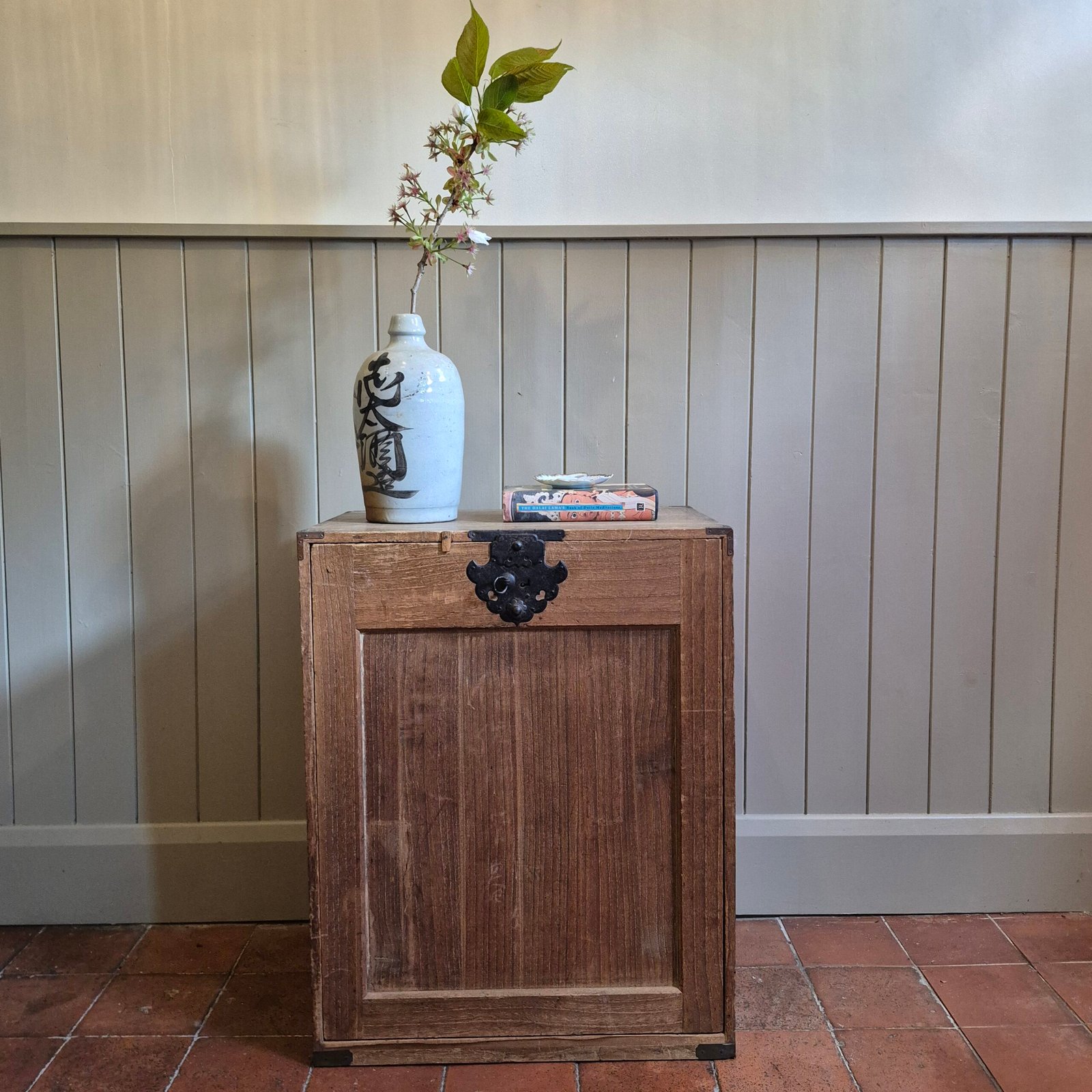 A characterful Japanese tansu chest, traditionally used for storing important papers, records, and personal documents. Pieces like this were often found in merchant or household settings, where they held anything from account books to contracts and letters tied to a family’s livelihood.