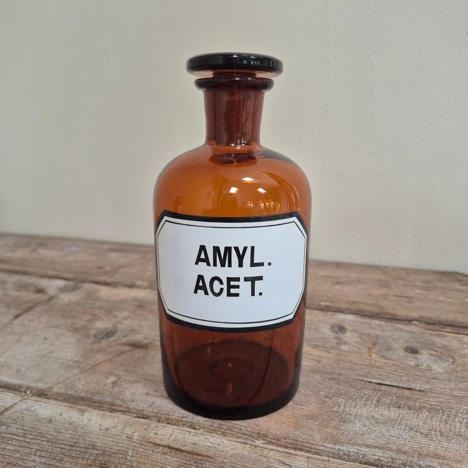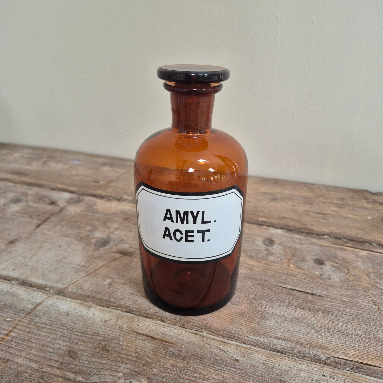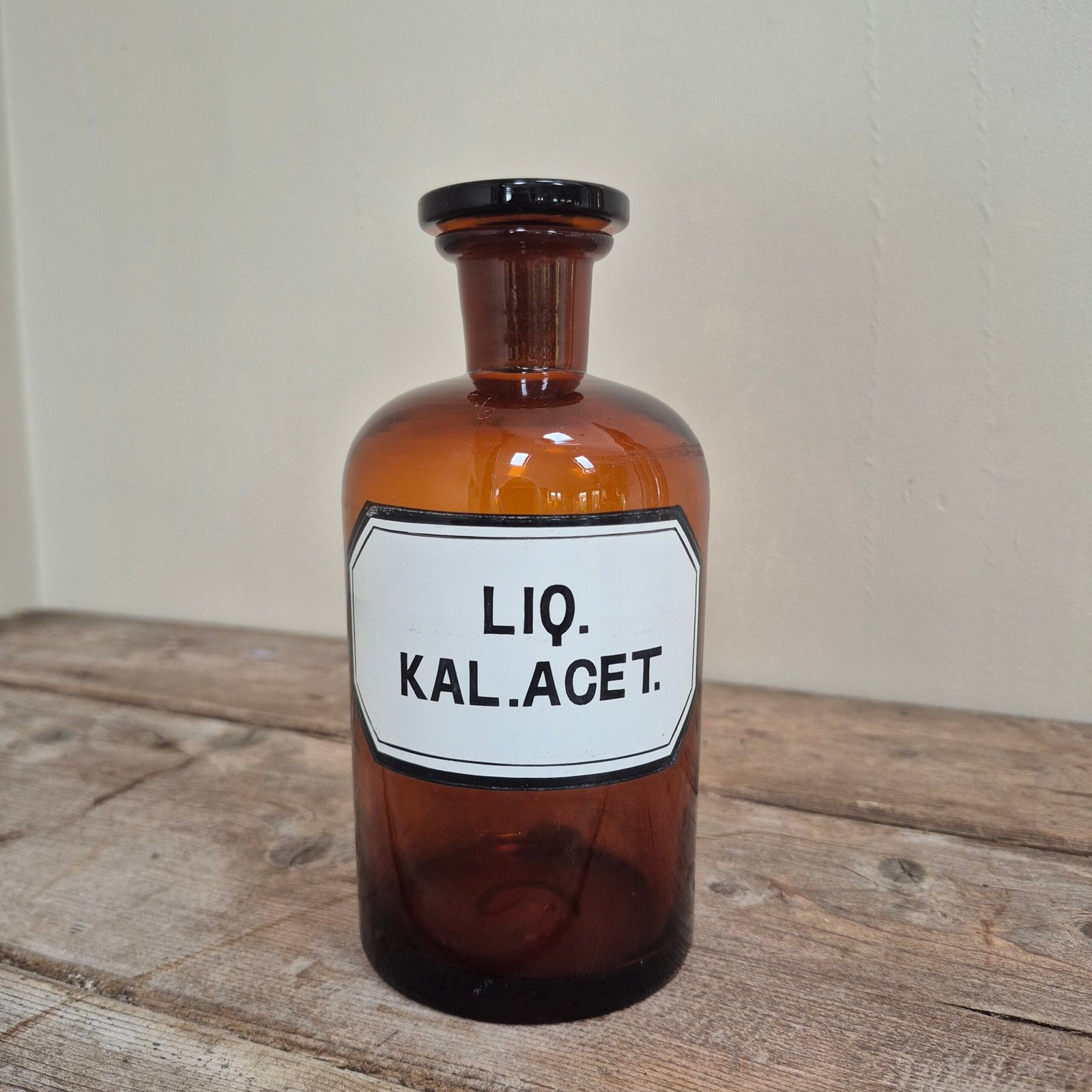 The labels read “Liq. Kal. Acet.” (Liquid Potassium Acetate) and “Amyl. Acet.” (Amyl Acetate), both traditional chemical compounds once used in medicinal and scientific preparations.